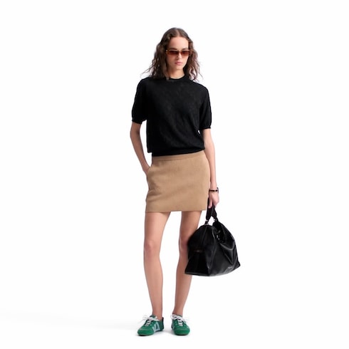 This knit top is effortlessly chic in a fine wool-blend knit featuring the Flight Mode collection’s Mahina Monogram signature in delicate open work, while the hems are neatly ribbed. The fitted shape is offset by the volume of the short puff sleeves for a feminine finish.