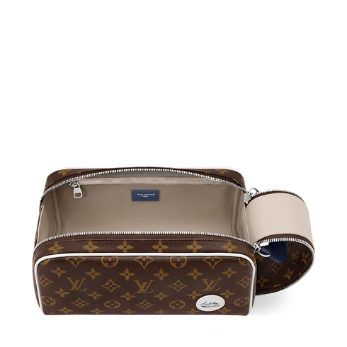 Made from Monogram canvas, this Dopp Kit features a white Louis Vuitton patch as part of the LV Golf collection. A wide double zipper attached to a leather handle offers easy access, making it ideal for grooming essentials. It’s also perfect for keeping small items like a phone or wallet organized and close at hand.