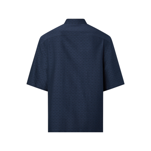 This navy shirt brings effortless elegance to a summery wardrobe. The breezy silhouette with an open collar is distinguished with a light silk blend seersucker incorporating an embossed allover mini Monogram motif. This easy piece is perfect for completing summery day-to-evening looks.