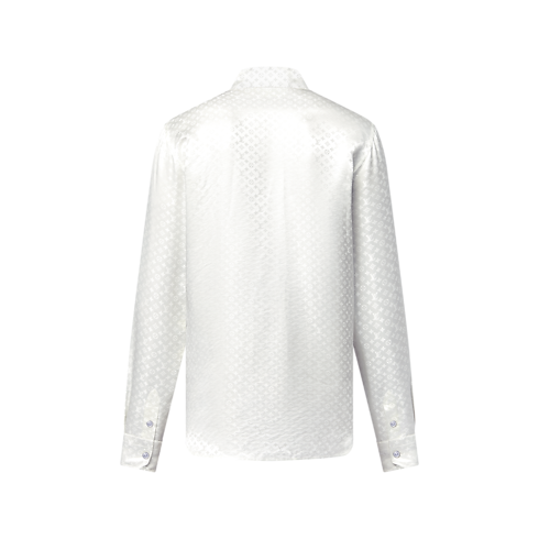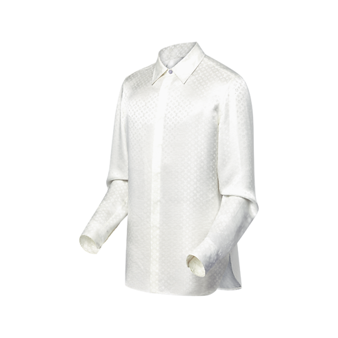 This chic white evening shirt is crafted from pure organic silk. It is elevated with a tone-on-tone allover Mini Monogram jacquard with a subtly textured effect that highlights the fabric’s fluid drape and natural luster. This versatile piece brings a sophisticated signature twist to an evening ensemble.