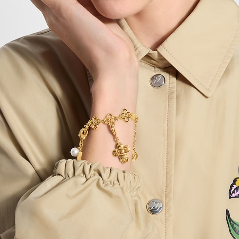The Mini Vivienne Doré joins the LV Charms collection, a vibrant contemporary homage to the House’s iconic heritage. The Monogram-inspired mascot is depicted in gleaming gold-toned metal, suspended from an LV snap hook. This versatile charm offers endless possibilities for customizing any Louis Vuitton accessory – a handbag, bracelet, necklace, or even a pair of shoes.