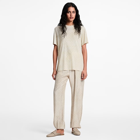 This casual T-shirt is reworked in a fluid jersey-silk blend for elevated everyday styling. It is cut in a timeless straight shape with a crew neckline and printed all over with the House’s dreamy Monogram cloud motif in a soft seasonal colorway for a subtle signature look.