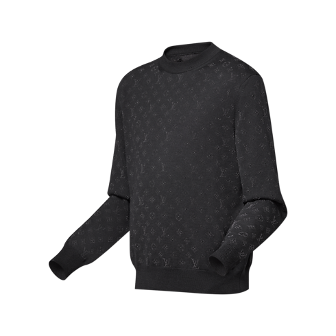 Crafted from a fine merino wool knit, this elegant black crewneck is a relaxed yet sophisticated choice for evenings. It is embellished with a glittering allover tone-on-tone Monogram motif, applied on top of the knit with a delicate finish. The shimmering design brings a chic signature accent to an ensemble for end-of-year celebrations.