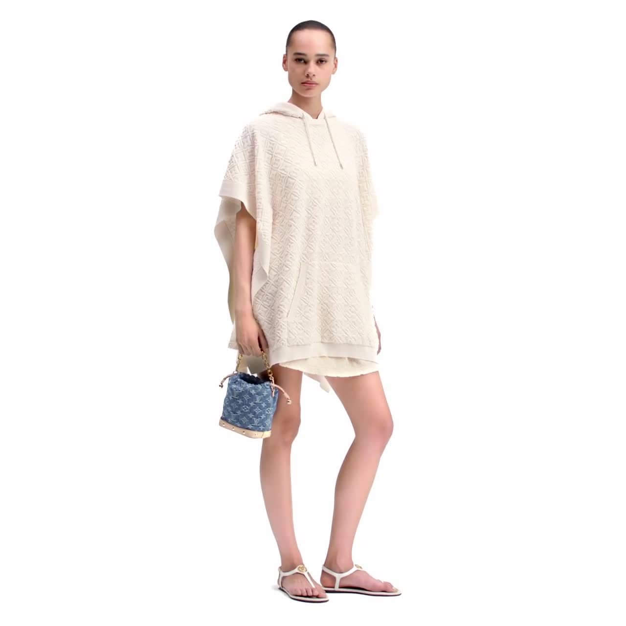 This poncho has effortless summer appeal in a long, loose shape that can be easily slipped over a summer look. It is crafted from a cotton-wool blend in a plush towelling finish, which is discreetly signed allover with Monogram Flowers in relief. A drawstring hood, a generous kangaroo pocket and ribbed edges introduce a subtly sporty feel.