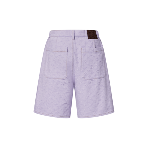 These denim workwear shorts are in a joyful lilac color that captures the cheerful mood of spring. They are richly crafted with a jacquard Monogram motif that has been overdyed for a softly textured look, while a pearly button and Monogram Flower rivets add chic finishing touches. Pair with a matching jacket for an eye-catching summery set.