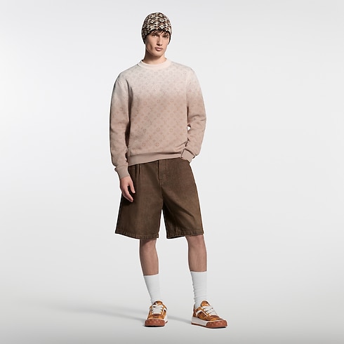 This fine-gauge cotton crewneck features a sophisticated sun-bleached effect inspired by India’s radiant sun and traditional garment-dying traditions. An allover Faded Monogram motif in shifting beige tones is integrated into the jacquard knit with a trompe l’oeil weathered look, bringing a light, graphic signature accent to everyday looks.