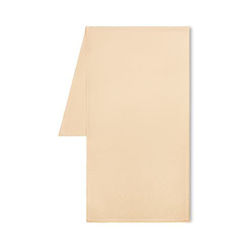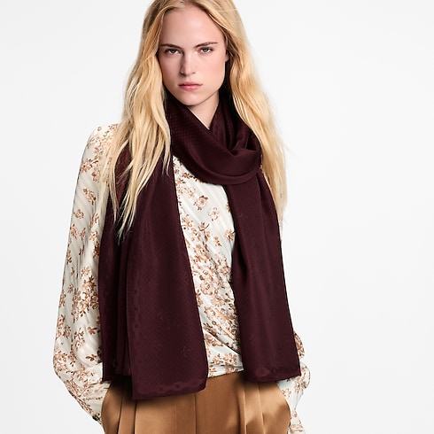 The creative design of the LV Monogram Shadow stole offers an original variation on a classic House signature. Styled in ultra-fluid silk, it features a tone-on-tone jacquard pattern of Monogram Flowers and Initials with a subtle, intriguing shadow effect. This sophisticated stole is ideal for festive occasions, enhancing the most elegant dresses and ensembles.