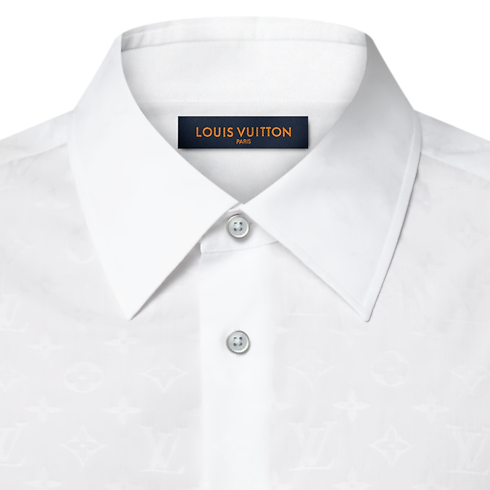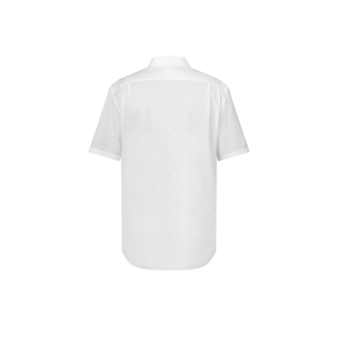 This short-sleeved classic shirt is a fresh choice for warm weather, crafted from white organic cotton with a tone-on-tone Monogram jacquard. An LV top button and a woven LV and Monogram Flowers label adorn the placket. This versatile piece can be paired with a matching Monogram Napolitana suit for a refined play of layers.
