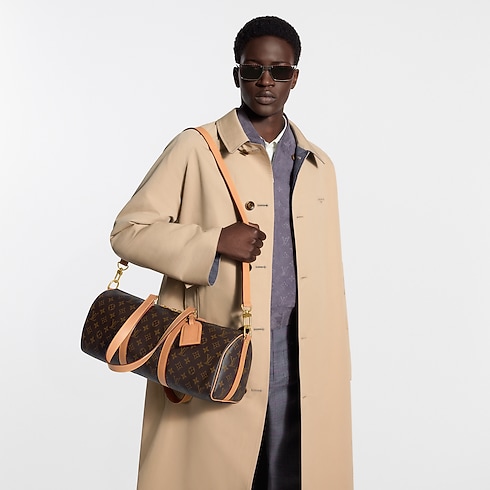 A new silhouette from Pharrell Williams, the Needle Bag is made from Monogram coated canvas with natural leather on the side bands and top handles. Its elongated straps allow easy shoulder carry, while the spacious interior adds versatility, accommodating a large wallet, a 9-inch tablet, and a phone.