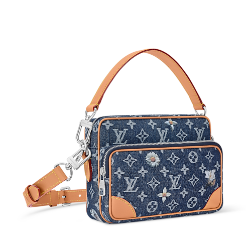 This season, Monogram Denim is enriched with intricate floral embroidery, merging rugged texture with delicate design for a fresh take on the Nil cross-body bag. The retro-inspired silhouette includes a main compartment with an inside flat pocket and a zipped pocket on the front. The removable leather handle and shoulder strap give multiple carry options.