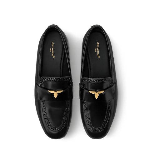 The Odeon loafer is a slim-line style crafted from glazed calf leather. The upper is complemented by refined signature details: star-shaped Monogram Flower perforations around the vamp and a half-Monogram Flower accessory in gold-toned metal on the strap. A fine leather outsole finishes this elegant model.