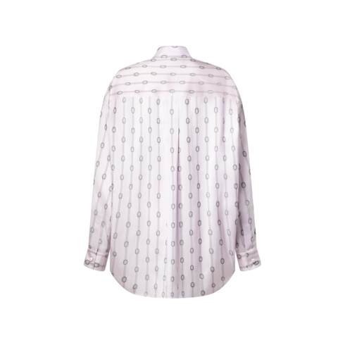 This shirt makes an elegant statement in fluid silk featuring an allover striped print detailed with graphic jewel motifs, which are complemented by playfully mismatched jewel buttons on the front. It is crafted in a breezy oversized fit with a collar and fastened cuffs for a classic tailored feel.