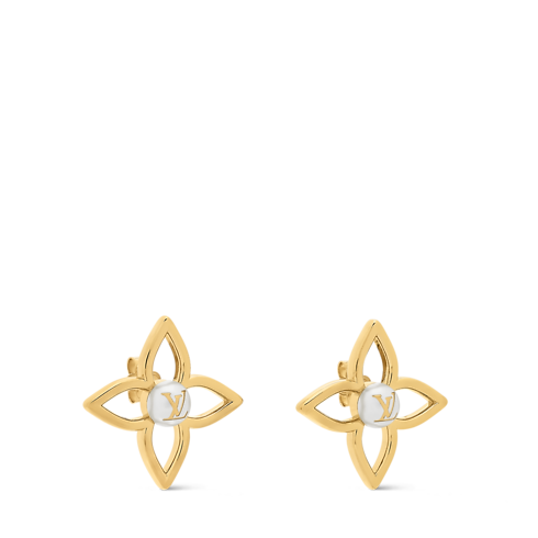 Expressing understated elegance, the Pearly Flower stud earrings combine a classic Louis Vuitton signature with the eternal beauty of the pearl. Their subtle design features an openwork Monogram Flower in gold-colored metal around a lustrous white resin pearl heightened with the LV Initials. Ideal for adding a touch of timeless femininity to any look.