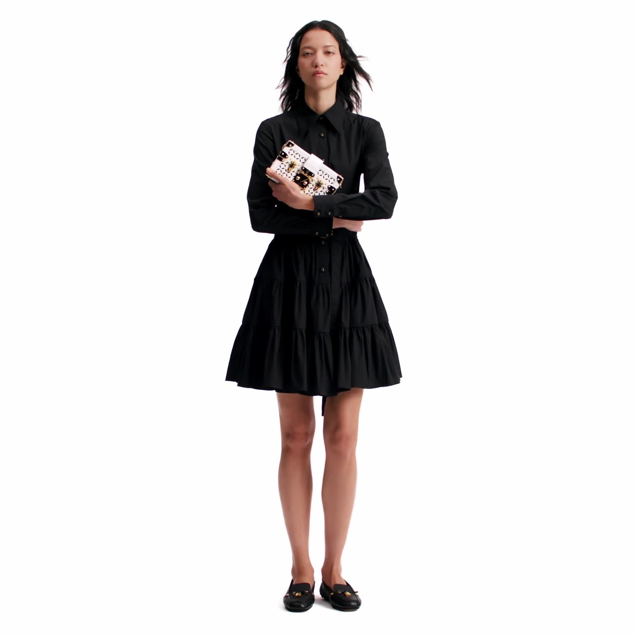 This exquisite Petite Malle features the Bloomcut animation, inspired by the House’s Monogram Flower, which debuted on the Pre-Fall 2024 collection. A testament to Nicolas Ghesquière’s aesthetic, the delicate design is crafted from laser-cut calfskin to create a geometric pattern that is both modern and feminine. Note the signature gold-toned trunk corners and S-lock closure.