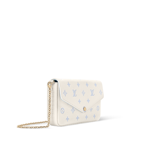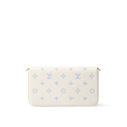 Reimagined in Milky White and Blue, this bi-color edition of the Félicie Pochette belongs to the Sweet Escape collection. It is crafted from signature Monogram Empreinte leather and features two removable pockets, one of which is zipped and the other features eight card slots. The elegant gold-toned chain offers multiple carry options.