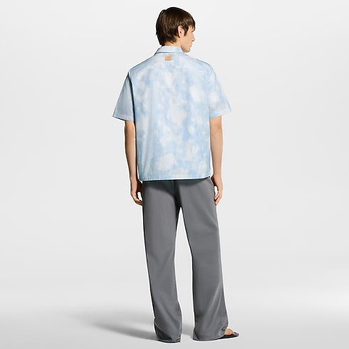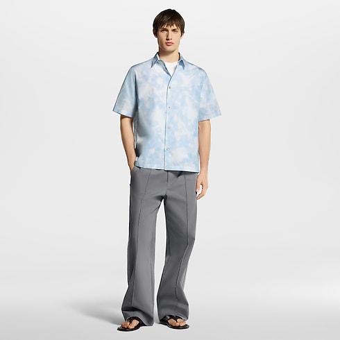 This fresh and breezy short-sleeved shirt is crafted from light cotton with a printed LV Flower X-Ray motif in pale blue and white tones. Printed over a Damier base, the graphic floral motif incorporates discreet LV and Monogram Flower signatures. This signature piece can be layered under a collarless jacket in the same motif.