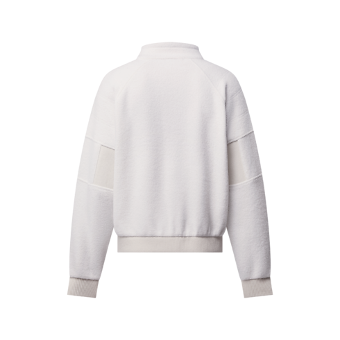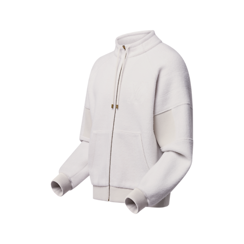 Casual yet elegant, this loungewear-inspired blouson is perfect for traveling, crafted from warm, softly textured wool fleece in timeless cream tones. The sporty tailoring features a tall, drawstring-adjusted collar and raglan sleeves with ribbed elbows for ease of movement. Topstitching creates a smart, quilted effect with an embroidered LV on the chest. Matching pants make a cosy set.