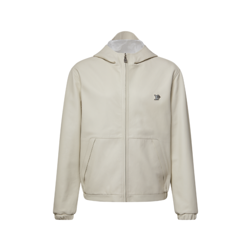 This reversible hooded blouson makes a versatile and sophisticated layer for spring. It has a supple white leather exterior, whose minimalist silhouette is adorned with a metal LV ornament on the chest. Reversed, it features technical Monogram jacquard fabric, with sporty pastel-toned color-blocked inserts. This go-to midseason piece can complete many looks, ranging from understated elegance to sporty fashion-forward styles.