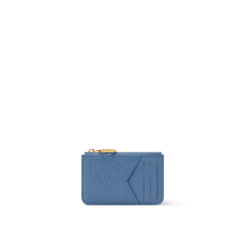 Reimagined in a seasonal Blue Jeans colorway, this edition of the Romy Card Holder is a timeless everyday choice. It is made from signature Monogram Empreinte leather and is adorned with a gold-toned zipper pull shaped as an LV Circle charm. The compact accessory includes three card slots, plus a zipped pocket for coins and one further flat pocket.