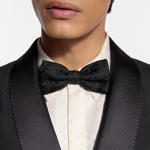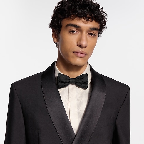 The Satin Cheetah bow tie offers an unexpected twist on the evening staple. An all-black style is always an assured piece, and this one is fashioned from black silk with a monochromatic animal print jacquard. Together, the fashion-forward pattern and classic construction create a lively piece with a hint of humor.