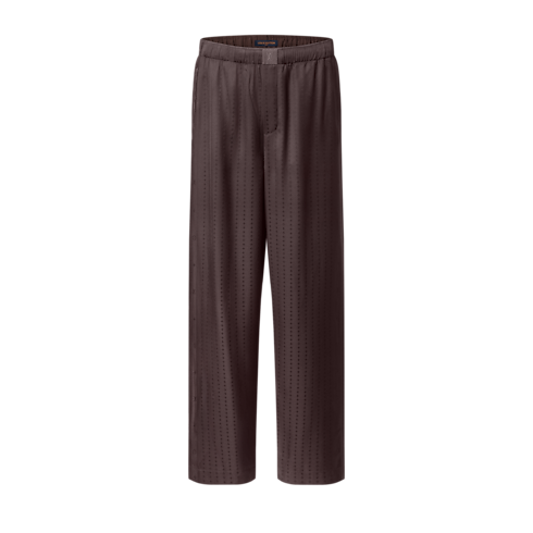 Richly embellished like a scarf, these fluid silk-blend pajama pants in rich brown tones are elevated with a jacquard Monogram Flower stripe motif creating a lustrous play of textures. The flowing, relaxed silhouette has a comfortable elasticated waist signed with a woven LV label. Pair with a matching shirt for a chic and cozy evening set.