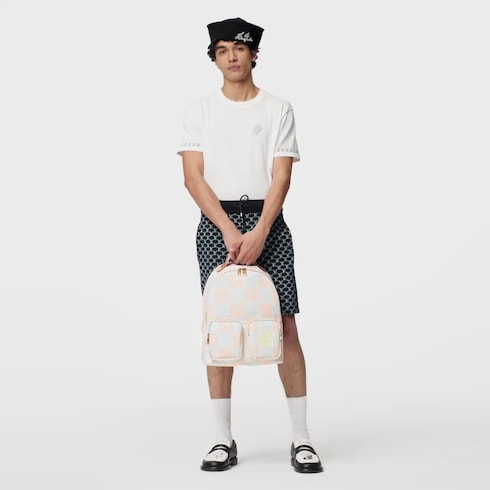 This smart white short-sleeved crewneck in a fine organic cotton knit is crafted with delicate contrasting jacquard signatures. These include a discreet ‘Marque L.Vuitton déposée’ on the chest and a band of LVs around the cuffs creating a neat graphic effect. This versatile piece brings a distinguished touch to everyday looks.