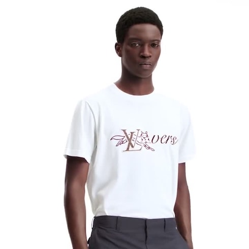 This white short-sleeved crewneck draws inspiration from the British countryside, showcasing a playful LV Lovers signature and a cheeky fox with a Monogram Flower. It features an embroidered LV patch in glen plaid and a Marque L.Vuitton Déposée patch on the back. Crafted from a luxurious cotton-silk blend, it adds a refined touch to a casual look.