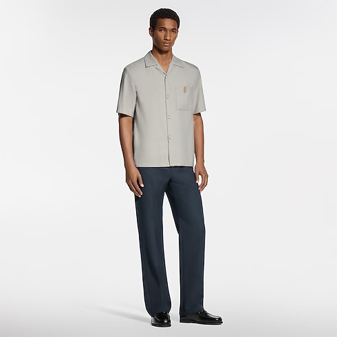Blending luxury and comfort, this beige short-sleeved shirt features a light cotton, silk and cashmere blend twill with a soft and airy touch. It has a relaxed, draped fit with an open collar and LV stitching on the first button. The chest pocket is adorned with a VVN leather signature tab that recalls the House’s trunk-making heritage.