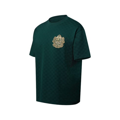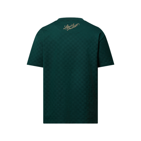 This collection’s Westminster dog walkers inspire this playfully regal t-shirt in rich green tones. Crafted in organic cotton piqué with a textured Damier jacquard, it is adorned with embroidered golden signatures, including an ornate LV Dog coat of arms on the chest. Perfect for end-of-year festivities, this piece brings a sophisticated accent to a casual silhouette.