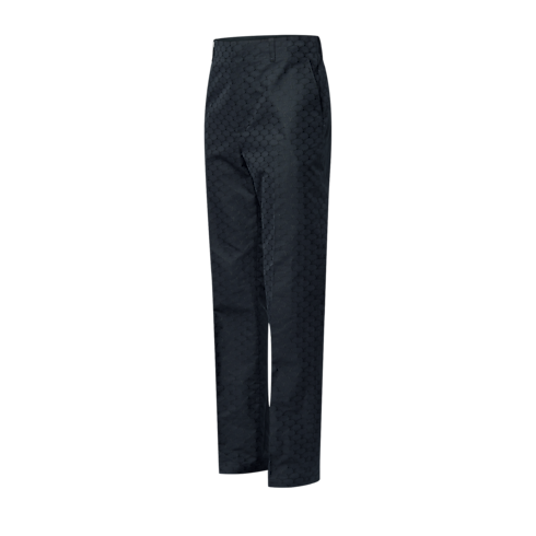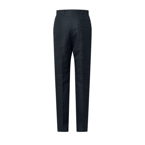 These chic black tailored cigarette pants cut an elegant silhouette. They are crafted from a luxurious blend of silk and cotton and embellished with a lustrous jacquard LV Fishnet motif. This sophisticated piece can be worn as a suit with a matching jacket for distinguished day-to-evening occasions.