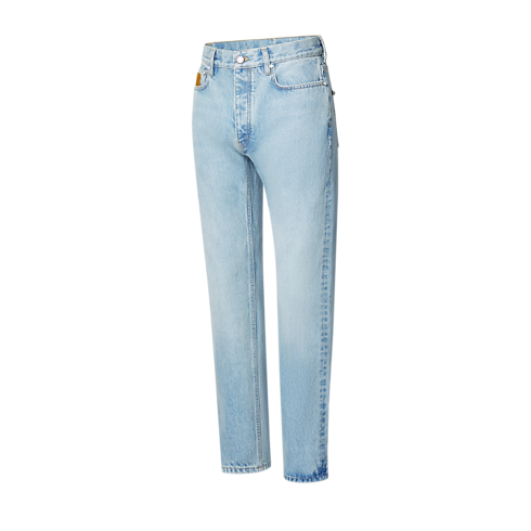 These slim jeans, crafted from premium Japanese denim, are a wardrobe essential enhanced with the Louis Vuitton savoir-faire. With their timeless light blue wash and their easy silhouette, they can be effortlessly styled with any look. Exclusive details include tobacco-toned topstitching, an embroidered LV signature on a rear pocket and signed nubuck patches on the ticket pocket and waist.