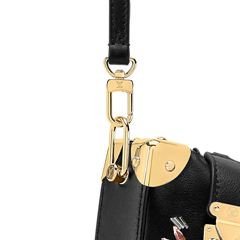 The Eden Embroideries collection presents this striking edition of the Slim Trunk, which is adorned with multicolor gems and crystals. Made from calfskin in classic Black, it is trimmed with cowhide and elevated with gold-toned trunk corners and a signature S-lock and chain. An elegant choice for evening occasions, it can be styled with or without the longer strap.