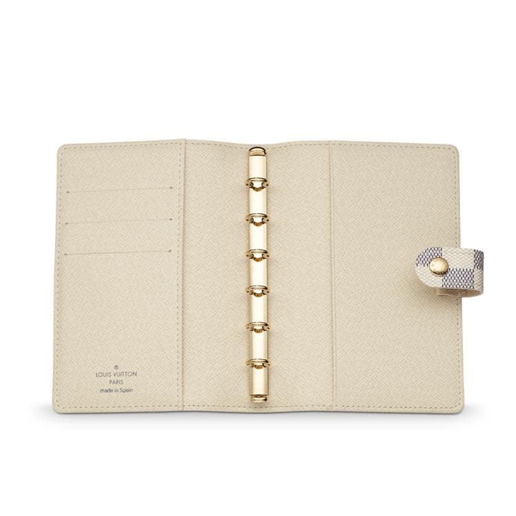 This elegant Damier Azur canvas agenda holds credit cards and features a press stud closure.Pair it with an Agenda Refill.