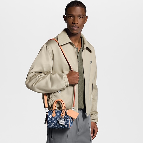 The smallest in the Speedy family, the compact Speedy 18 Bandoulière is made from Monogram Flowers Denim, accented with cowhide-leather trim and a metallic watering can charm. Its woven Monogram and subtle floral embroidery bring a fresh twist to classic lines. A detachable, adjustable strap allows both shoulder and cross-body carry.