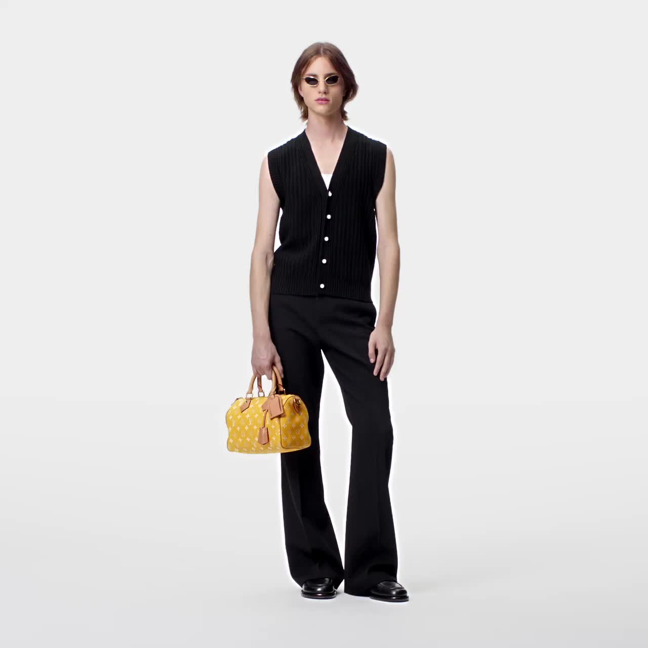 This Speedy P9 Bandoulière 25 Monogram Leather takes on an ultra-luxurious feel in extra-soft calfskin with a Monogram print that mimics the aspect of Monogram on canvas. Creative Director Pharrell Williams’ attention to detail is visible in all aspects of this bag: from the polished golden hardware to the lambskin lining and the exclusive plaque inside the bag.