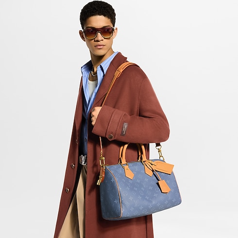 An iconic silhouette comes alive in color with the Speedy P9 Bandoulière 30, crafted from calfskin leather with a tonal Monogram print. Contrasting calfskin highlights the rolled-leather top handles, removable strap, and distinctive name tag. Inside, a golden plate – featured in all the House’s P9 bags – attests to the exceptional craftsmanship of this exclusive piece.