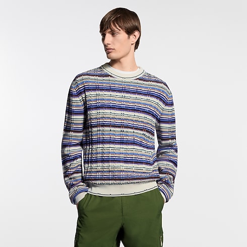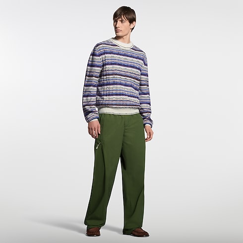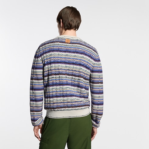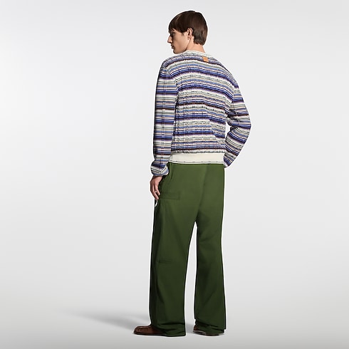 This long-sleeved crewneck has a hand-crafted look with its textured cable knit and colorful lilac-oriented stripes. Crafted from organic cotton, this is a light layer that anticipates spring and is easy to style with this season’s rich and subtle tones. A VVN-colored leather Marque L.Vuitton Déposée patch adds a smart finishing touch to the back.