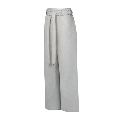Capturing the runway collection’s elevated approach to comfort, these pants are crafted from a warm wool blend in a plush felted finish. They are cut in a laidback straight shape for versatile styling. The casual paperbag waist is cinched with a playful self-tie tube belt trimmed with graphic metallic beads for a chic finishing touch.