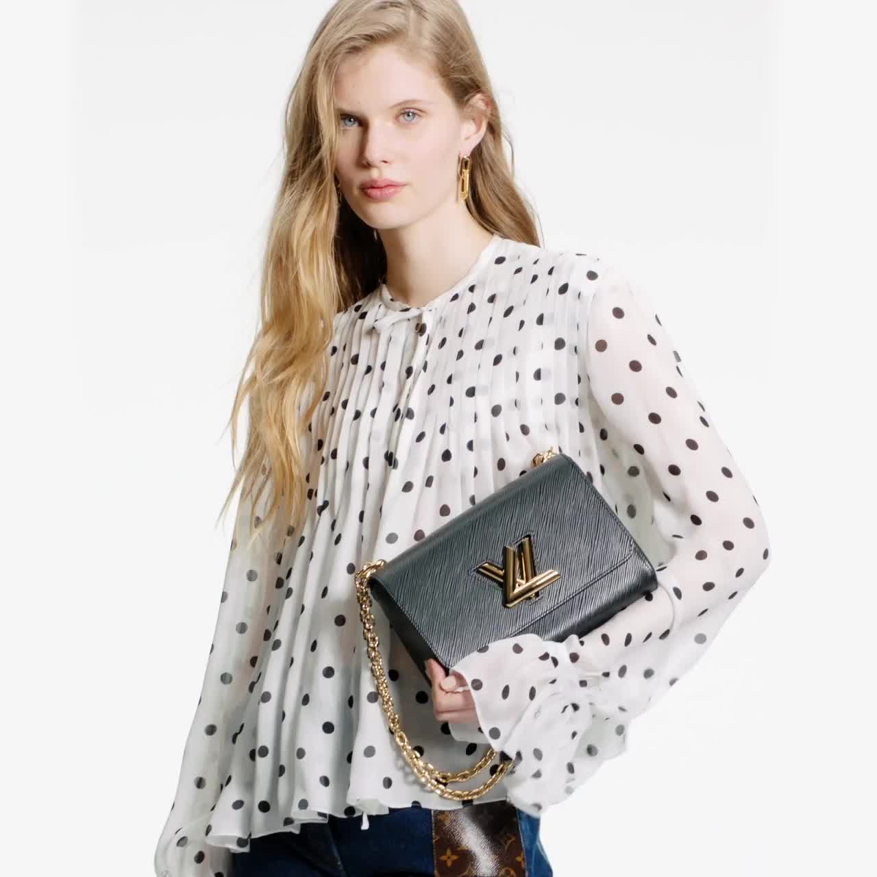 Crafted from the House’s emblematic Epi leather, the Twist MM chain bag features the now iconic LV Twist-lock, a sculptural signature in gleaming golden metal. Unexpectedly roomy, thanks to the cleverly designed 'wave' base, this beautifully made bag is a fashionable day-to-evening companion. The sliding chain strap can be doubled for shoulder carry or lengthened for cross-body wear. A New Classic of the House, the Twist bag was introduced at the 2015 Cruise Show.