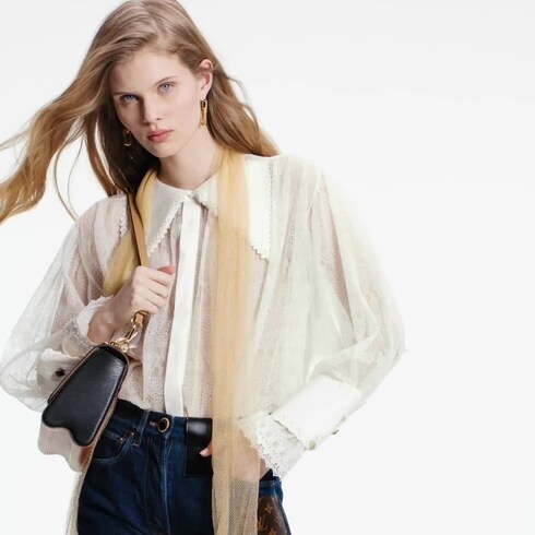 Crafted from the House’s emblematic Epi leather, the Twist MM chain bag features the now-iconic LV Twist lock, a sculptural signature in gleaming golden metal. This Twist MM bag in Camel Epi leather edged with black is offered with a leather strap for more carry options. For day, it can be worn over the shoulder or cross-body. Held by the short chain handle (with the strap removed), the bag becomes an ideal accessory for evening looks.