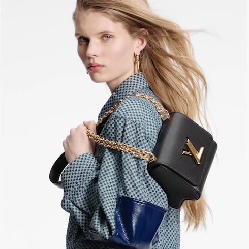 This Twist PM chain bag in grained Epi leather is accented with the now-iconic LV Twist lock, a sculptural signature in gleaming gold metal. Compact but surprisingly roomy, thanks to the cleverly designed 'wave' base, this beautifully crafted piece is a fashionable day-to-evening companion. The sliding chain strap can be doubled for shoulder carry or lengthened for cross-body wear. A New Classic of the House, the Twist bag was introduced at the 2015 Cruise Show.