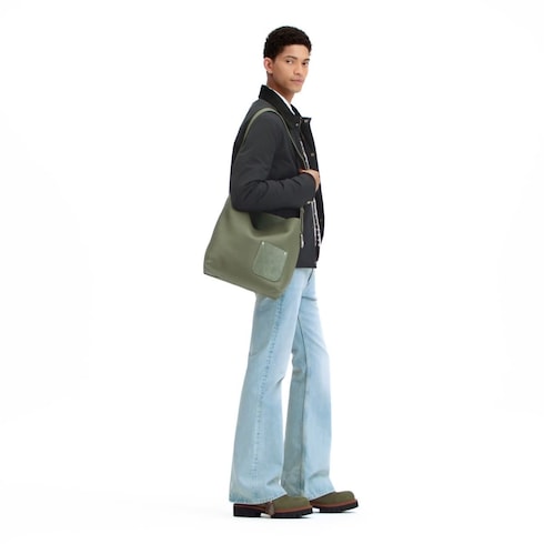 The Verso Hobo in LV Touch calfskin leather blends style and versatility. Its reversible design offers two distinct looks: smooth grained leather on one side, and matching-colored suede on the other. Each side features a pocket with a discreet stitched V signature, while a removable suede pouch adds extra functionality.