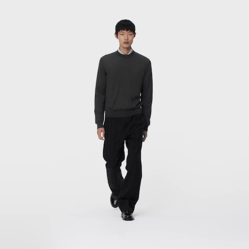 These elegantly draped black pants bring a softer mood to tailoring. Made from jacquard wool suiting, they are embellished with a flattering tonal Monogram Stripes motif, which twists a classic striped pattern with discreet LV signatures and Monogram Flowers. These pants can be worn as a relaxed suit with a matching Napolitana jacket.