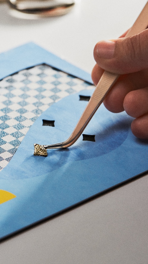 Playfully reinterpreting the Maison’s codes through a kaleidoscopic lens, Wang’s mini-Capucines, the smallest Artycapucines created yet, combines a graphic motif reminiscent of the iconic Damier with chromatic adornments. Imbued with whimsy, the creation is evocative of candy wrappers and sweets.