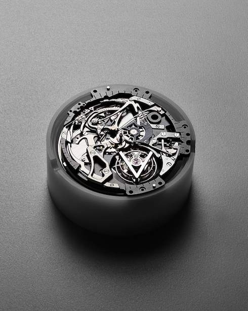 Bringing together two worlds of truly modern design and time-honed craftsmanship, this exceptional timepiece places two icons of high watchmaking at center stage: a Flying Tourbillon escapement and a striking mechanism known as a Cathedral Minute Repeater.