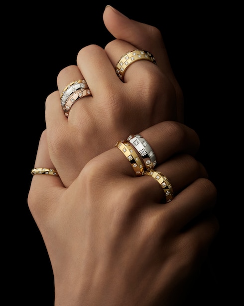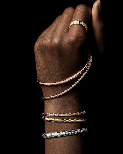 Exuding a pure dynamism, the unisex design is unveiled in three widths in white, yellow, or rose gold for limitless stacking, layering, and styling combinations.