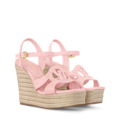 Women's designer sandals and espadrilles by Louis Vuitton include flat, wedge, platform and strappy models. Opt for the glamour of a high-heeled evening number or the laid-back chic of an espadrille: all these fashionable styles are expertly crafted in Italy and embellished with the Maison’s signature accents.