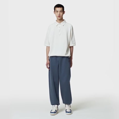 Celana joging berbahan cotton jersey ini tampil memikat dengan ornamen mutiara pada penarik ritsleting di bagian saku. Dihiasi sentuhan bordir ‘Marque L. Vuitton déposée’ signature yang samar pada bagian kaki kiri, celana ini dapat dipadukan dengan jak
