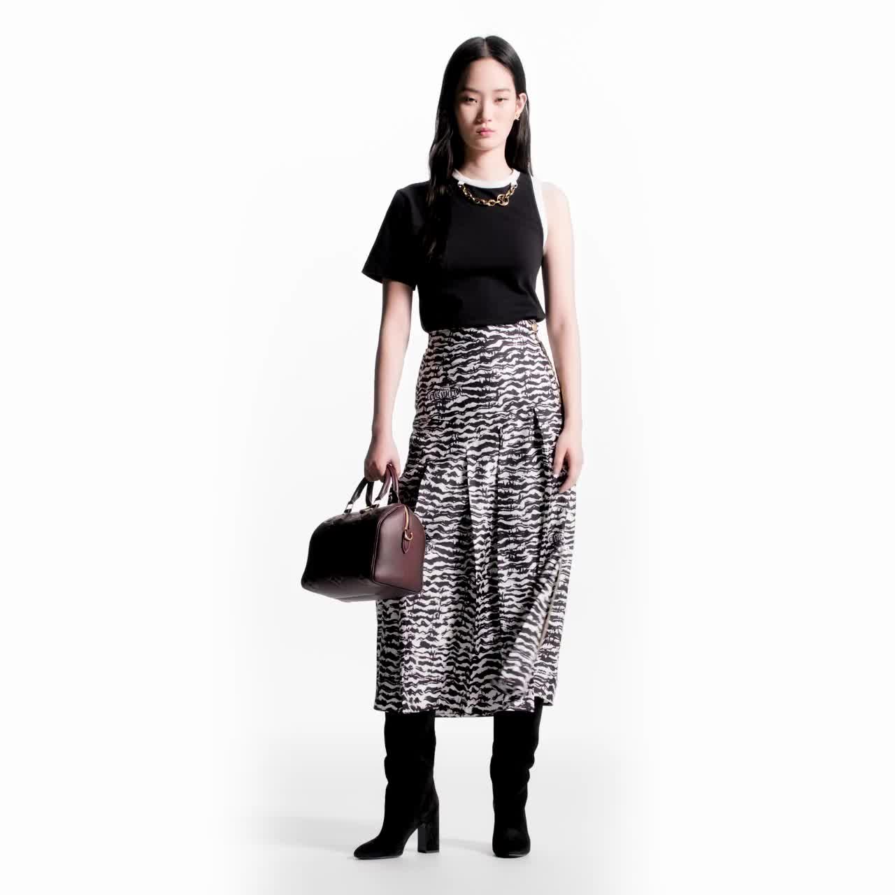 Motif ink tiger khas musim ini memberi sentuhan kontemporer yang menyegarkan pada rok midi ikonis Rumah Mode. Rok nyaman berbahan silk twill lembut ini dilengkapi finishing berupa lipatan bergaya asimetris. Desainnya disempurnakan dengan ritsleting ganda berbahan kuningan di samping kiri.