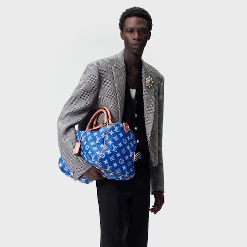 Creative Director Pharrell Williams menghadirkan Speedy P9 Bandoulière 40 Monogram Leather yang terbuat dari material grained calfskin lentur dan alami, sehingga lembut saat disentuh. Corak Monogram dicetak dengan teknik silk-screen canggih di atas bahan kulit berwarna cerah untuk menghasilkan tampilan pudar seperti Monogram yang tercetak di atas canvas. Seluruh bagian dalam tas Speedy ini dilapisi bahan lambskin leather yang sangat mewah.